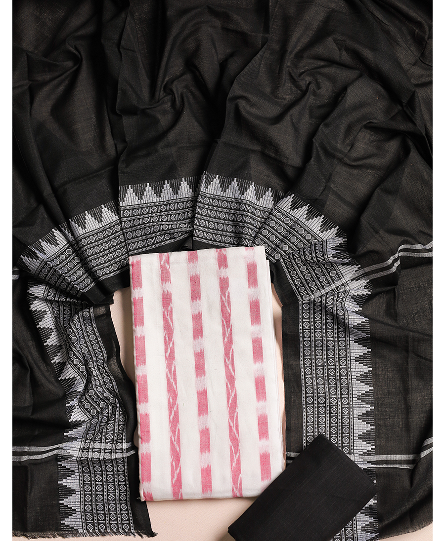 Indulge in the serene charm of our cotton Suit Set, where traditional craftsmanship meets modern elegance. Crafted from the finest cotton, this ensemble promises unmatched comfort and style. This Pair comes with beautiful cotton samblpuri ikat top paired with beautiful dupatta and plain bottom.Â