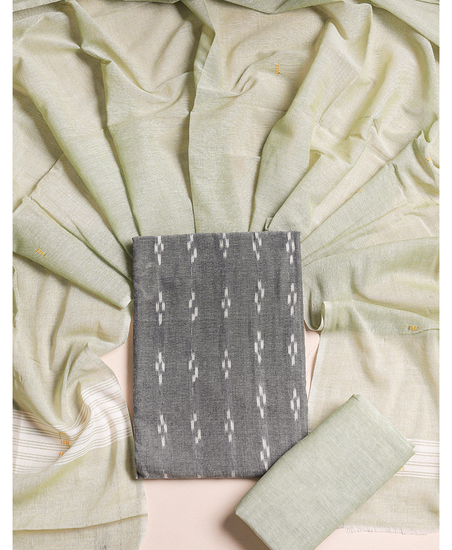 Indulge in the serene charm of our cotton Suit Set, where traditional craftsmanship meets modern elegance. Crafted from the finest cotton, this ensemble promises unmatched comfort and style. This Pair comes with beautiful cotton samblpuri ikat top paired with beautiful dupatta and plain bottom.Â