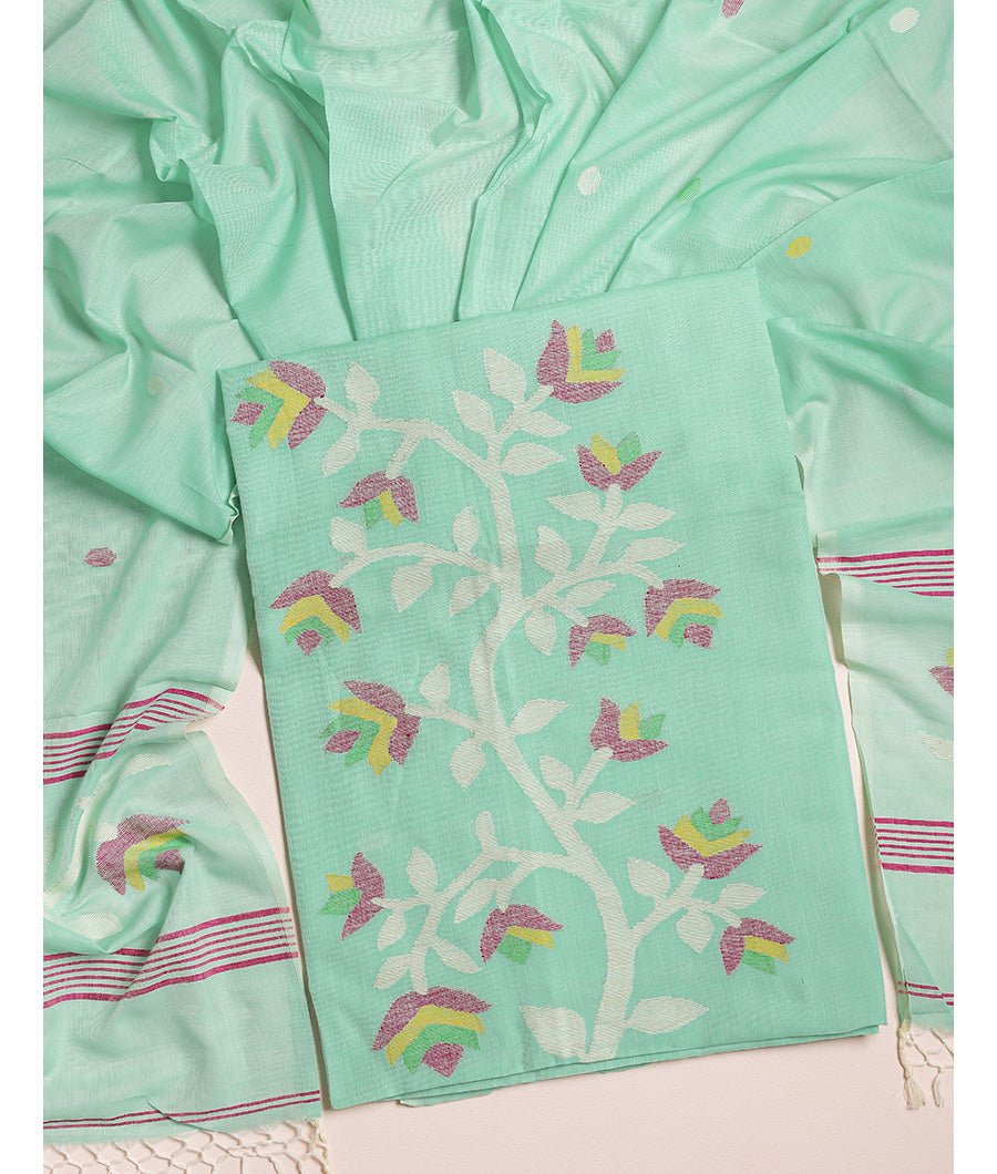 Experience the elegance of traditional craftsmanship with this pure cotton handloom Jamdhani suit set. Woven with meticulous care, the breathable cotton fabric ensures comfort while the intricate Jamdhani patterns add timeless sophistication, making it ideal for both festive occasions and everyday wear. This suit set offers a refined blend of style, comfort, and heritage artistry.