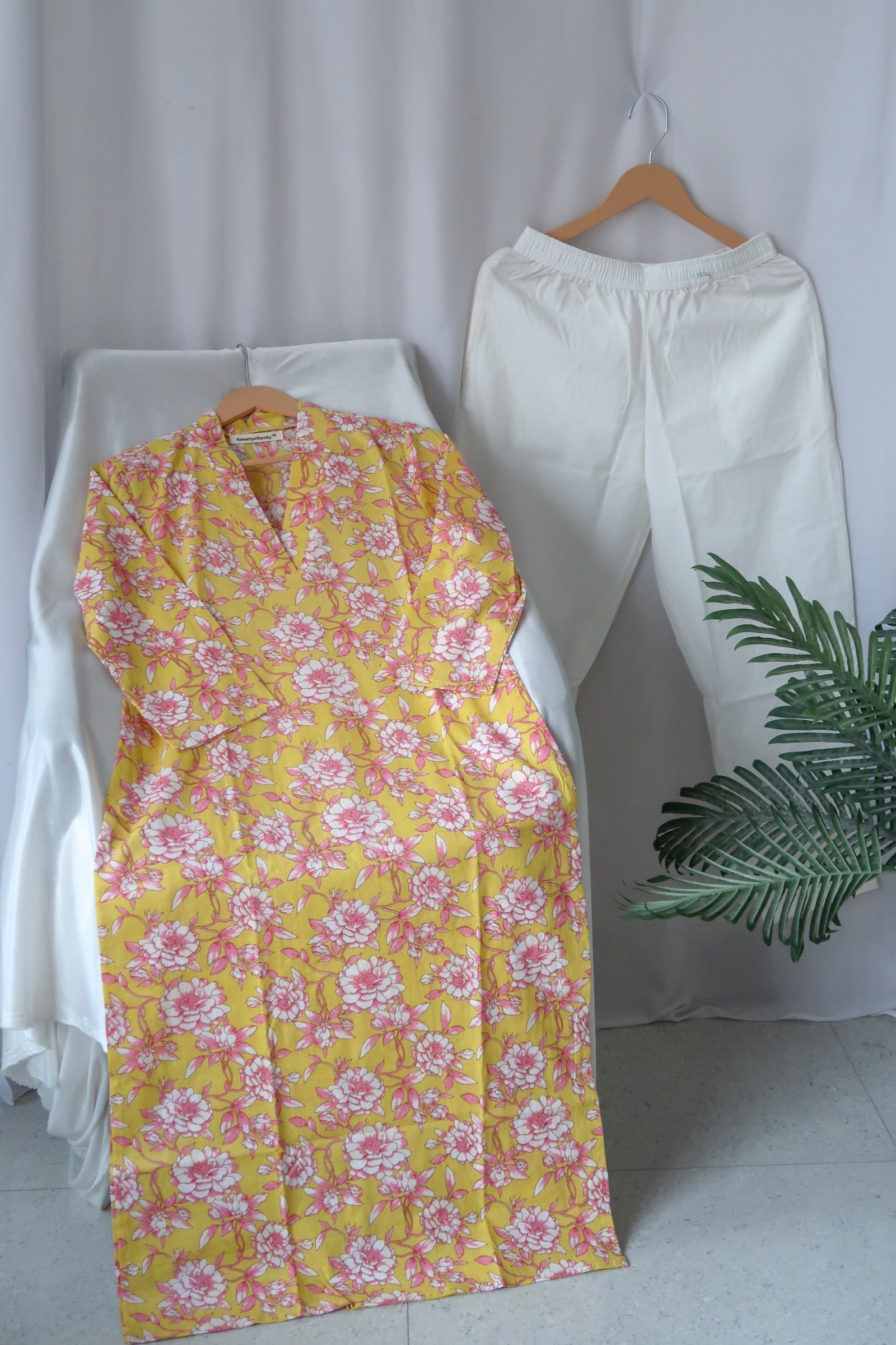 Brighten your wardrobe with this vibrant straight kurta pants set, crafted from soft and breathable pure cotton for comfort and style. Â
